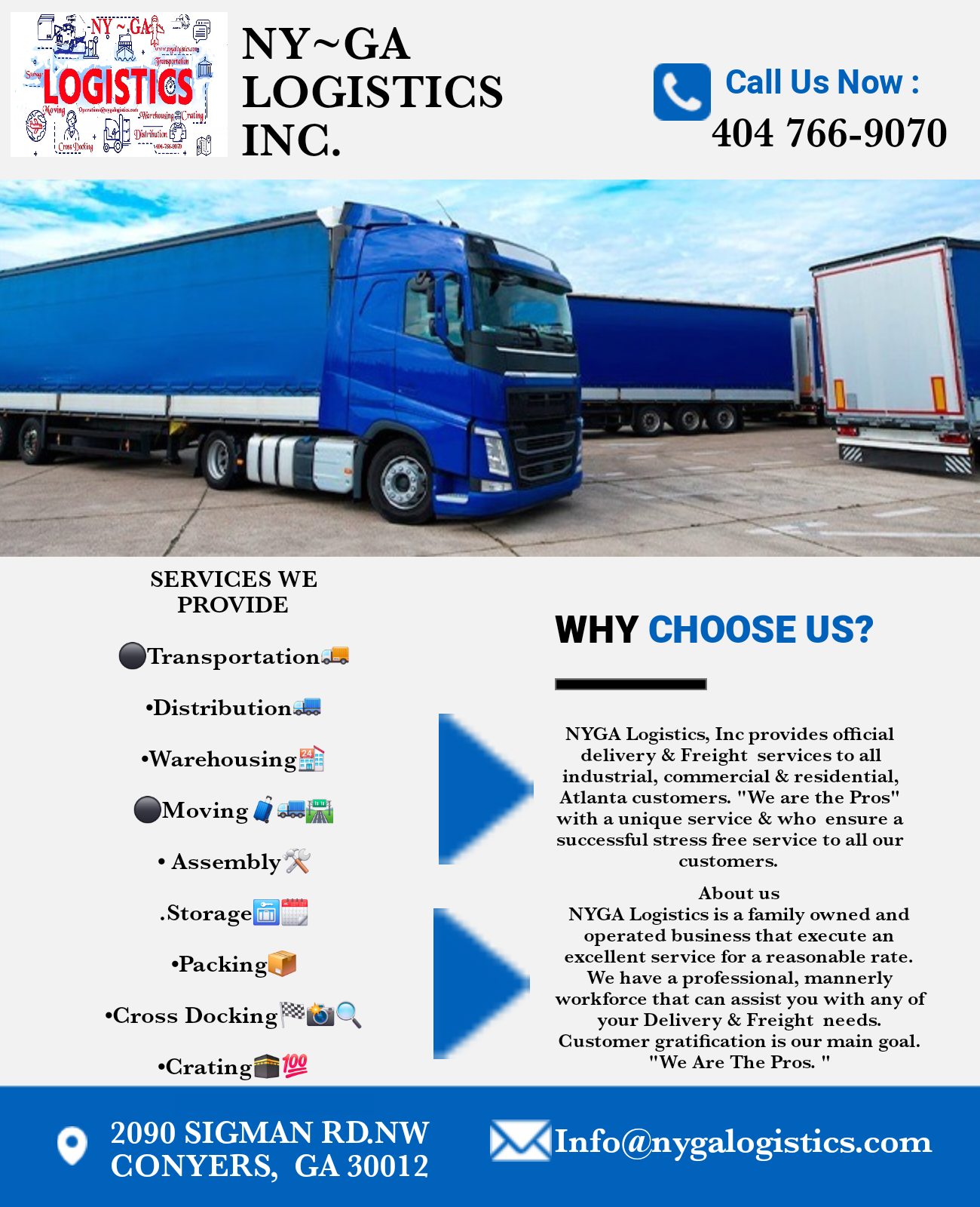 If you’re in the Metro-Atlanta area and need a dependable logistics company, I highly recommend NYGA Logistics!